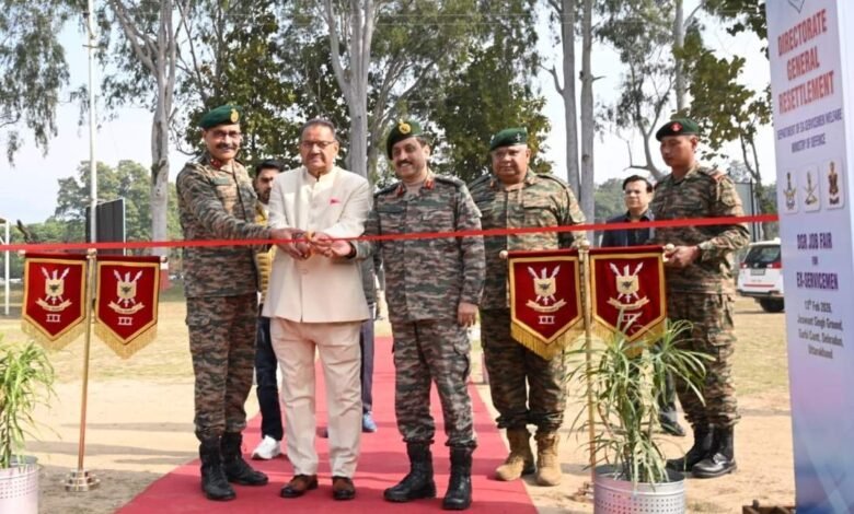 देहरादून में रक्षा मंत्रालय द्वारा आयोजित पूर्व सैनिक रोजगार मेले का रिबन काटकर शुभारंभ करते सैनिक कल्याण मंत्री गणेश जोशी
