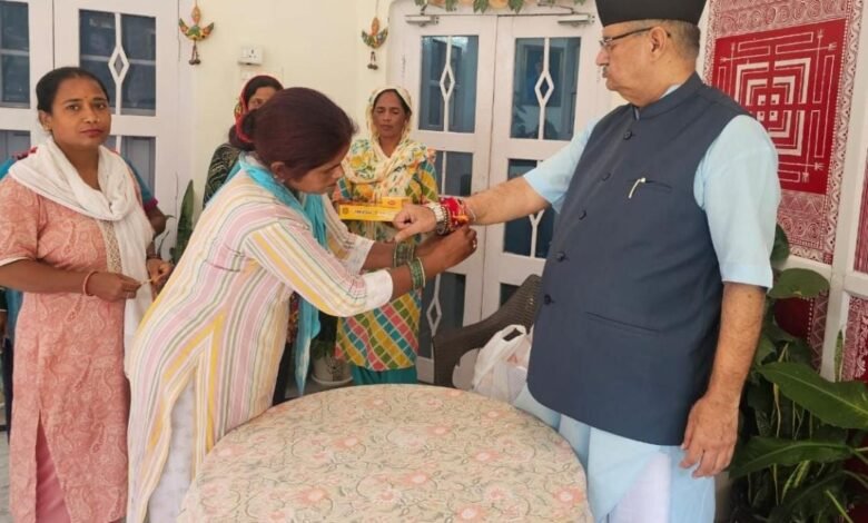 रक्षाबंधन पर कन्या गुरुकुल छात्राओं व पर्यावरण मित्र महिलाओं ने मंत्री गणेश जोशी को बांधी राखी