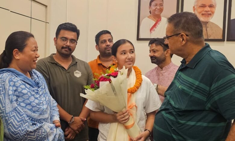 राष्ट्रीय स्तर पर चयनित छात्रा अनुष्का को मंत्री गणेश जोशी ने किया सम्मानित।